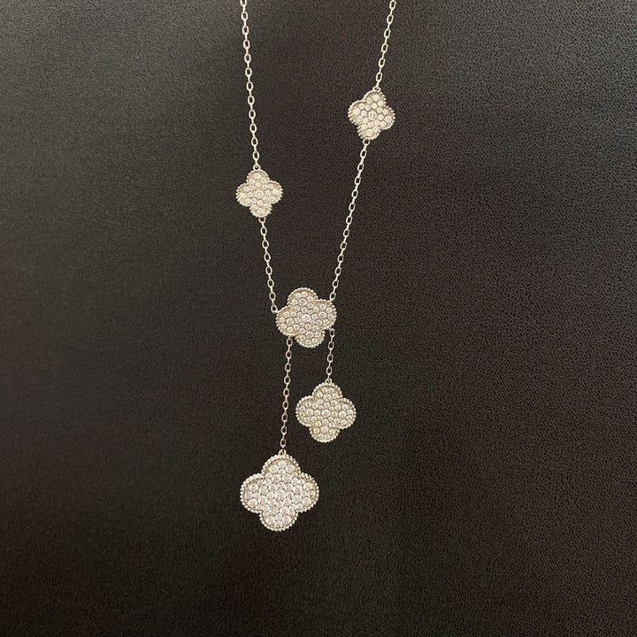 ˇShow YourselfˇCLOVER 5 MOTIFS SILVER DIAMONDS NECKLACE